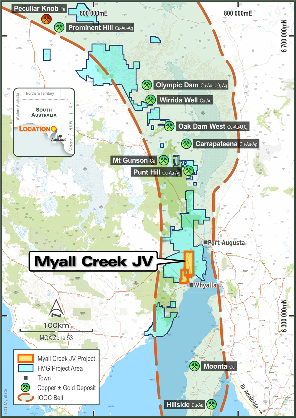 In 2019 Fortescue entered into a Farm-in and Joint Venture (FJV) covering Myall Creek which requires Fortescue to fund $1.5m in exploration including 1,500m of drilling over a five-year period. To date, FMG have entered into a Native Titel Agreement, completed a detailed airborne magnetic survey and a ground gravity survey.